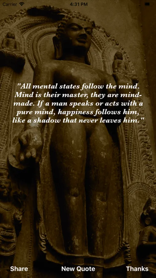Buddha Wisdom gives you randomly chosen sayings of the Buddha from the Dhammapada. Buddha Wisdom is easy to use and doesn't require a network connection for getting new quotes. You can post inspiring quotes to social media with the touch of a button.