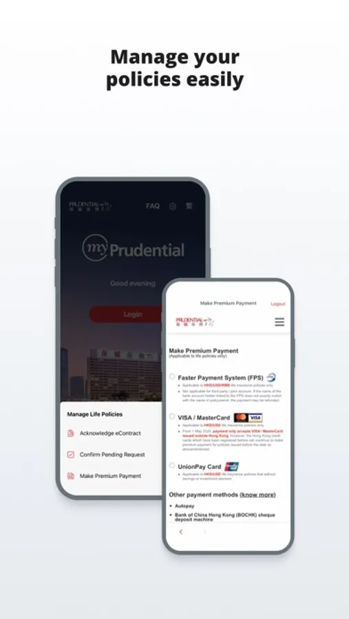 - Flexible Payments: Manage your Prudential policies more efficiently by choosing from multiple premium payment methods.
