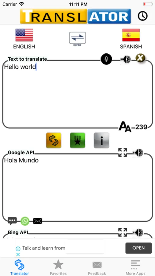 Spanish Translator is an application that TRANSLATES ENGLISH WORDS AND PHRASES TO SPANISH, accurately. So when you use the application, you can be confident that you’re saying the right thing and pronouncing it the right way. No guesswork. No sign language. No confusion. Once you download this application to your iPhone, you’ll have the Spanish translation of words and phrases at your fingertips.