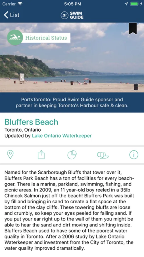 Swim Guide is the only charity app of its kind, made by Swim Drink Fish Canada (formerly Lake Ontario Waterkeeper).
