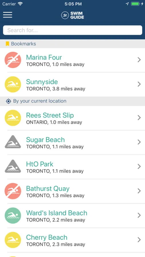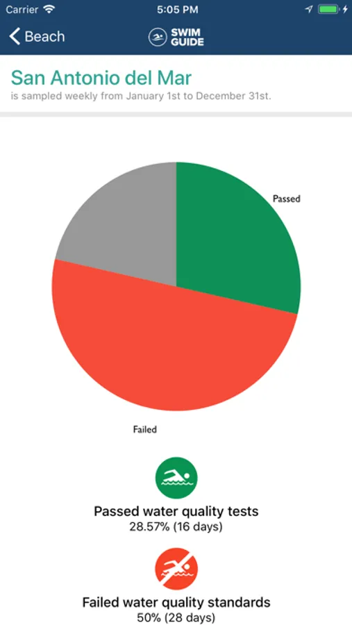 Swim Guide provides you with current recreational water quality information for your favourite beaches and swimming holes. Every beach is marked with a Green or Red icon so you know when the water at your favourite beach is clean for swimming and when the water quality is failed to recreational water quality criteria.