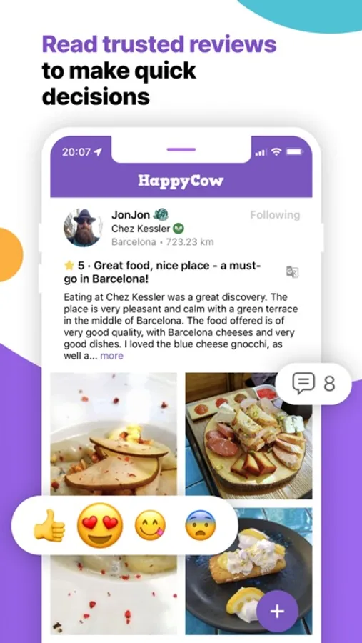 Since 1999, HappyCow has helped users discover healthy, vegetarian and vegan food options at 200,000+ restaurants, cafes, and grocery stores etc. in 180+ countries. With the app, you can do food search effortlessly via filters, connect with the community, and get all the inspirations you need! Read 1,000,000+ reviews, look at 1,500,000+ photos posted by our awesome community!