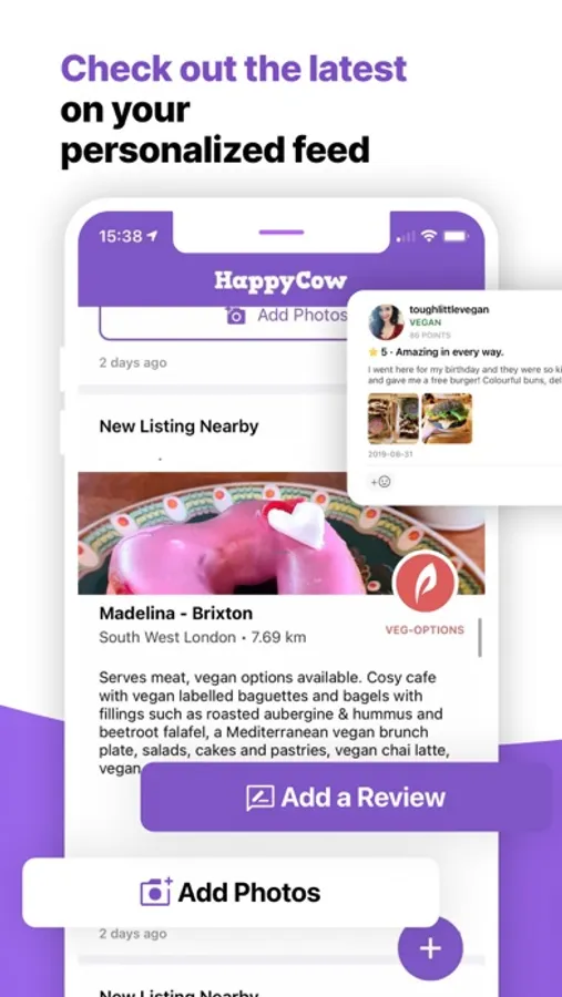 • The Feed: Scroll to see what the community thinks about the latest vegan food around you