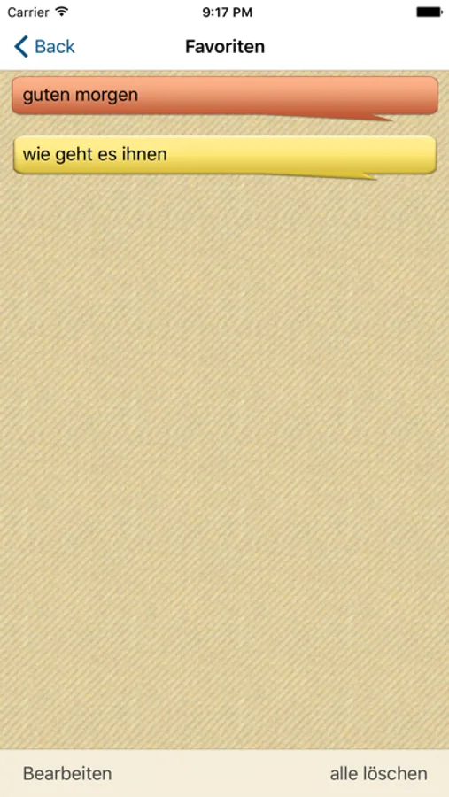 Favoritenliste in der Nutzer häufig verwendete Sätze speichern können