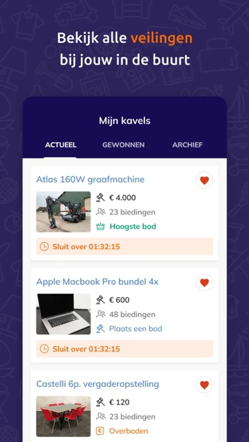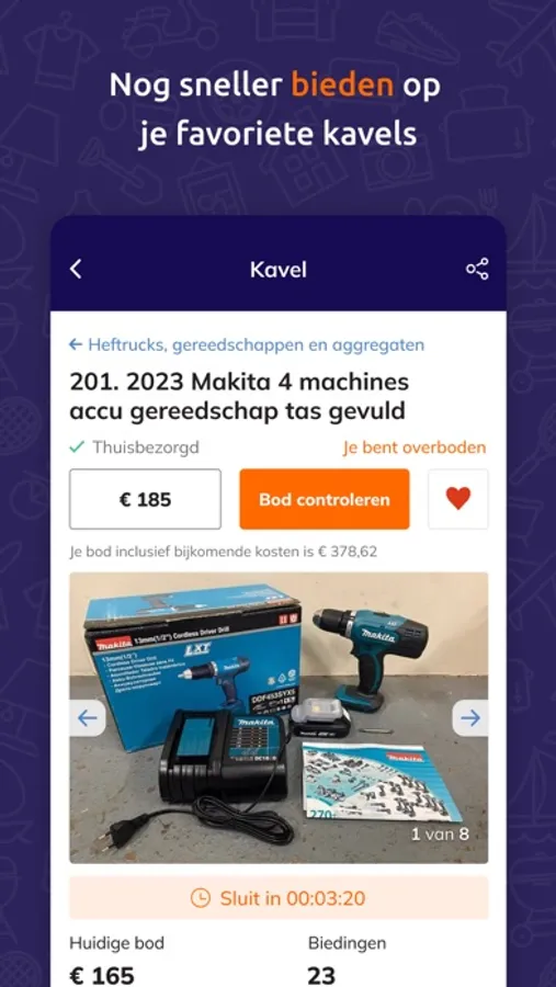 Gebruik deze App om direct overbiedingsnotificaties te ontvangen, wanneer u niet meer de hoogste bieder bent.