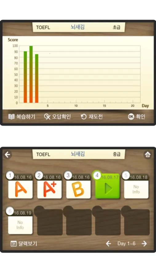 6. 테스트 결과보기 : 그래프,점수,달력을 통해 확인