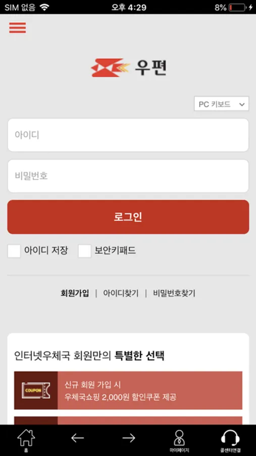 PC환경에서는 인터넷우체국(www.epost.go.kr)으로 접속하시면 모바일과 동일한 서비스를 이용하실 수 있습니다.