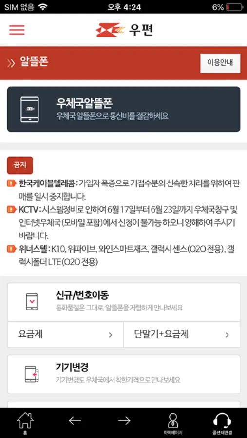 알뜰폰소개, 신규·번호이동, 기기변경, 요금조회(실시간 요금조회) 서비스를 제공합니다.