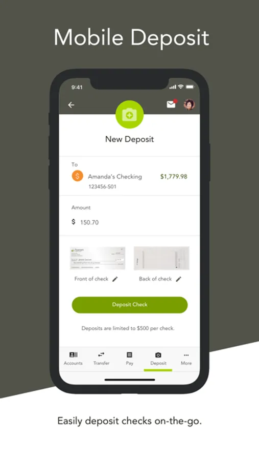 • Deposit checks with Mobile Deposit