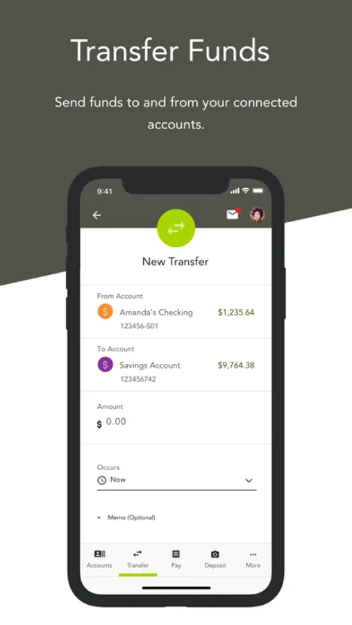 • Transfer funds to and from connected accounts