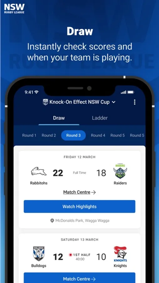 The Official NSW Rugby League app will keep you in the front row. Download now and never miss a minute of the greatest game of all!