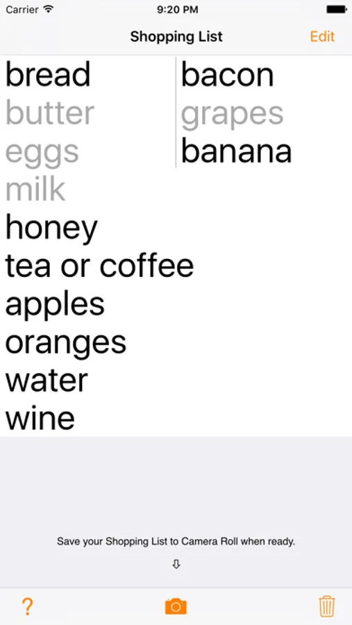 — Save your list to the Photo Library as a picture