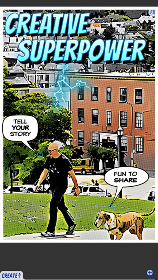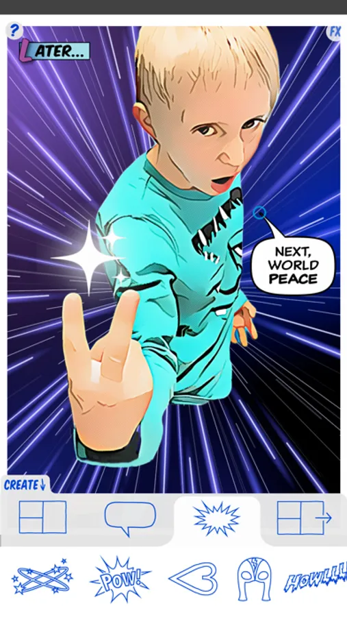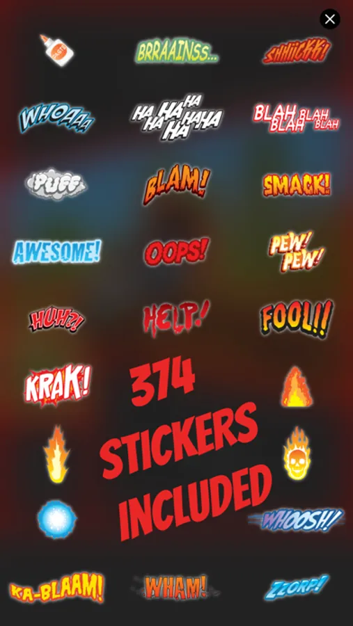 Arm yourself with the best graphic effects, 105 inspiring layouts, 374 hand-drawn* comic Stickers, 12 caption and text tools, and auto-content from Flickr, and you have the superpowers to Rule the Universe - in Your stories!