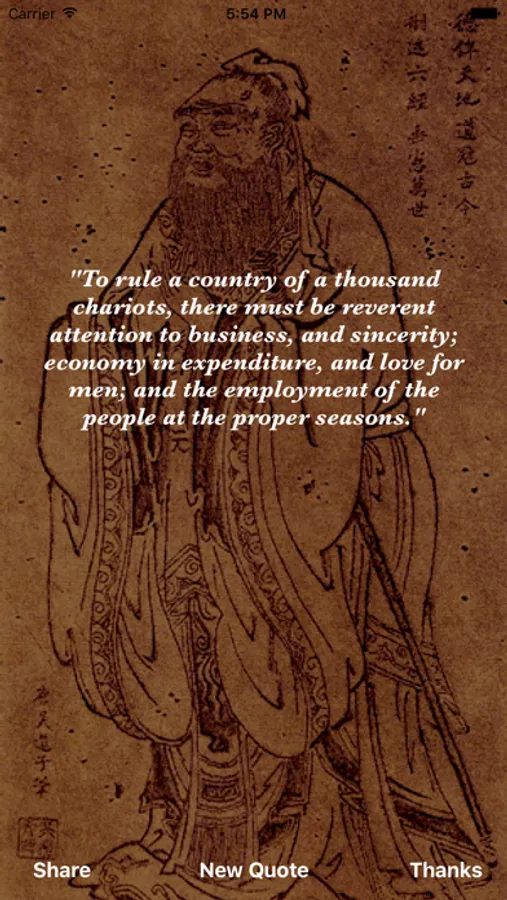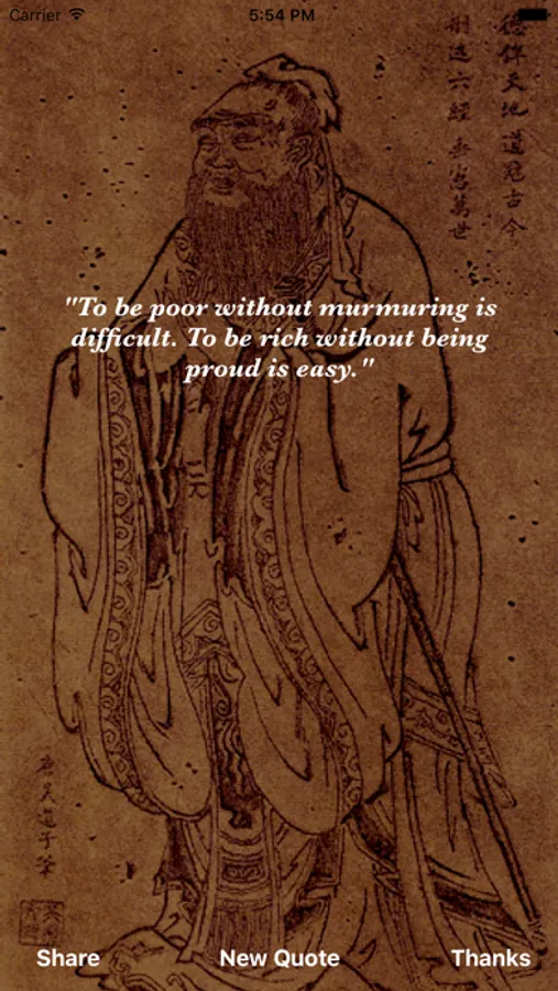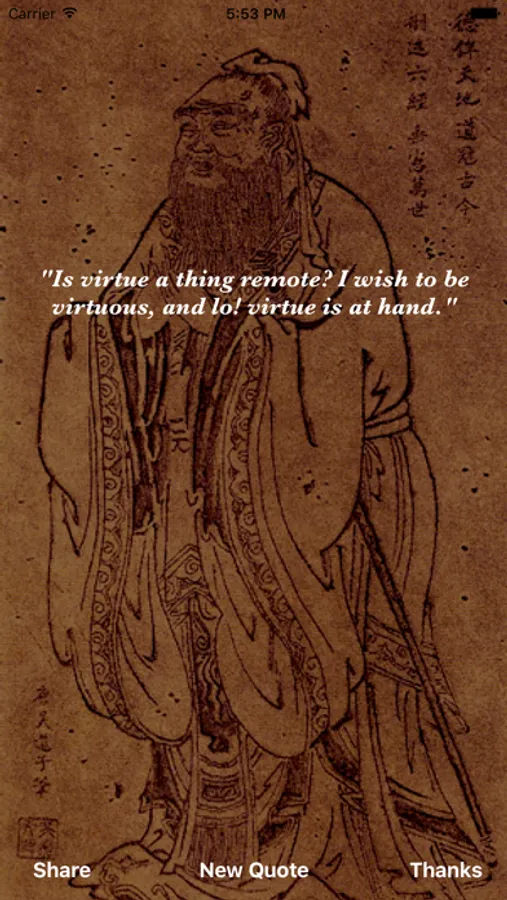 Confucius Wisdom gives you randomly chosen sayings of Confucius from the Analects. Confucius Wisdom is easy to use and doesn’t require a network connection for getting new quotes. You can post inspiring quotes to social media with the touch of a button.