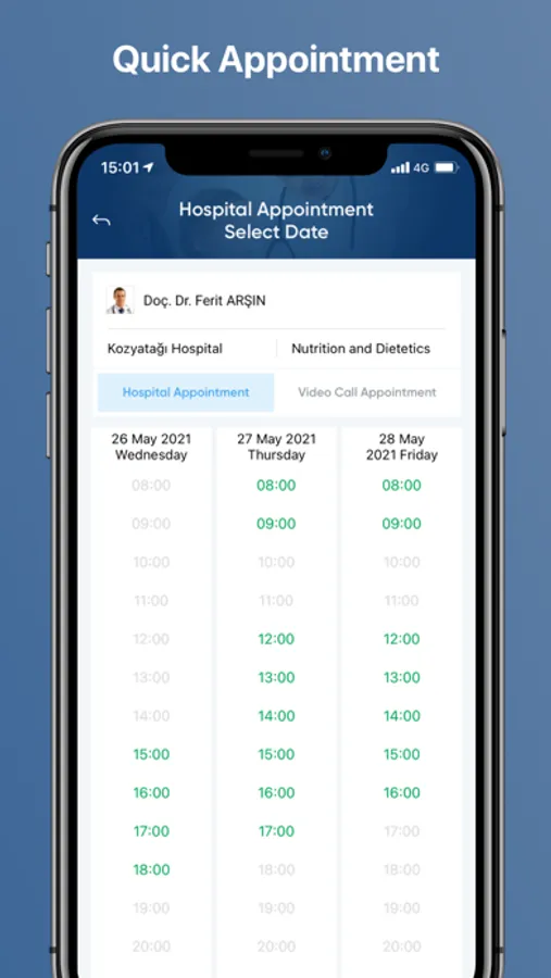 • By choosing the most convenient day and time from the calendar, you can arrange an appointment with the hospital or schedule an appointment with the doctor who you wish to have a video call. Over the app, you can visit your appointment by video call and view your past appointments.