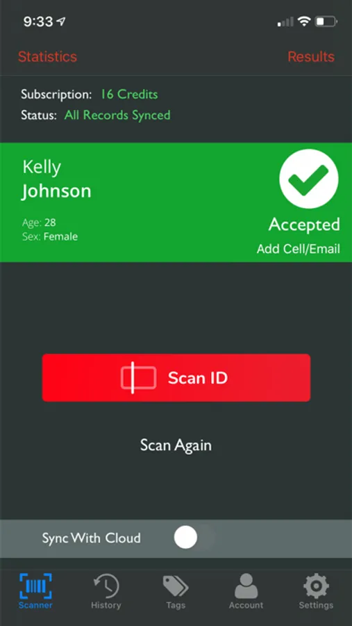 Use the ID scanner app to verify age, validate the ID and identify flagged patrons. Create multiple tags (such as VIP, banned, 86, sales prospect, client, guestlist, etc.) for your business. Any associated tags will be shown the next time you scan the patron. These can be shared across multiple devices through the cloud.