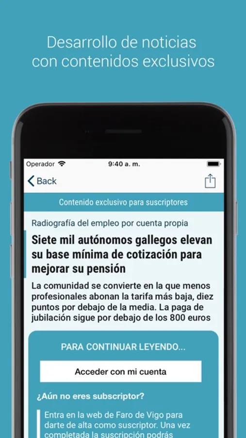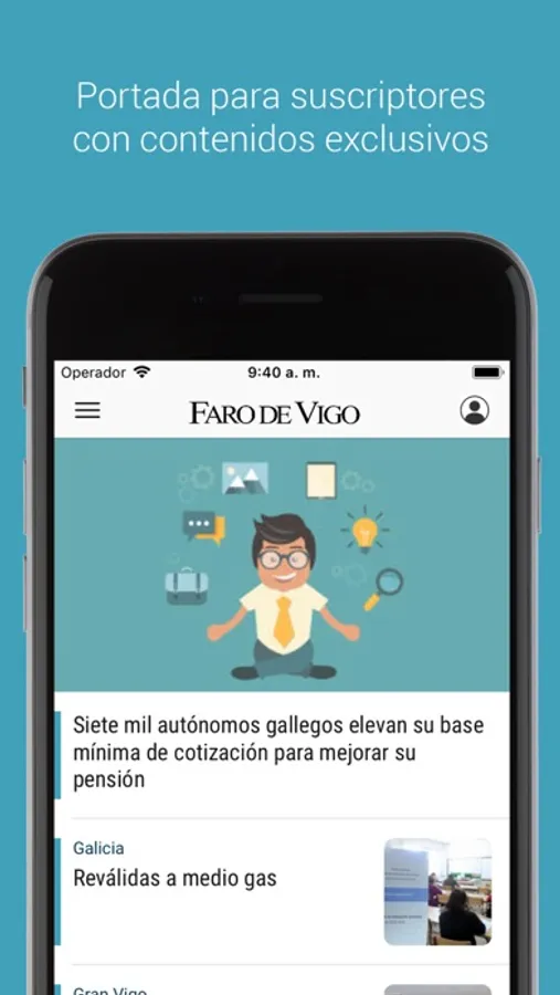 Además, en el apartado de noticias puedes acceder al contenido exclusivo para Suscriptores. De esta manera, tanto en el móvil como la edición web disfrutarás sin ningún tipo de limitación de los reportajes, entrevistas,exclusivas locales y artículos de opinión de Farodevigo.es.