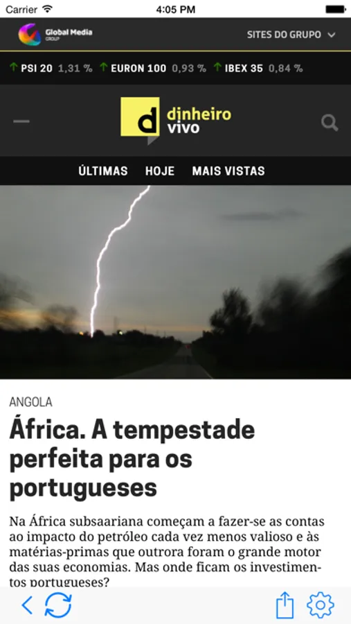 Os grandes e pequenos negócios e quem os faz. A grande e pequena economia e quem manda nela. Os mercados, as cotações e quem as faz subir e descer. As pessoas, os números e os acontecimentos. A web, a publicidade, os empregos. Os gestores, os gurus, os fazedores. O seu Dinheiro Vivo no iPhone, iPod Touch e iPad.