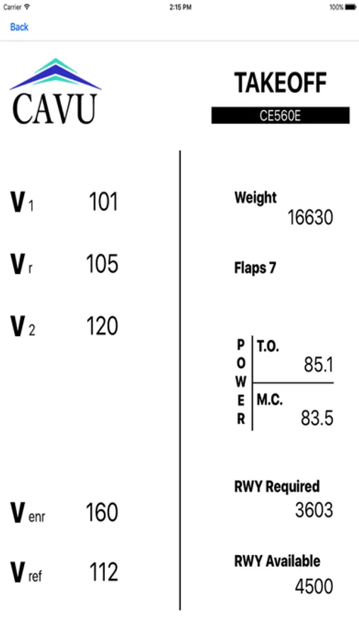Most aircraft come with wet and contaminated runway data when available. EFB-Pro provides analysis for most turbine aircraft. Current aircraft type availability can be found on the CAVU website (Link below). Aircraft not currently available can be added by contacting CAVU. Multiple aircraft can be stored and retrieved on the device by simply selecting the tail number from a list.