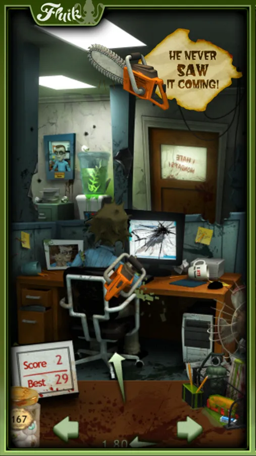 Office Zombie is brought to you by Fluik Entertainment, makers of wicked-fun mobile games such as Office Jerk, Grumpy Bears and Plumber Crack. Search the App Store for “Fluik” to browse all our games.
