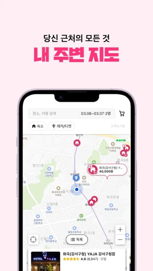 - 4만 5백 여 개의 호텔, 모텔, 펜션, 게스트하우스, 등 모든 유형의 숙박정보가 한 눈에