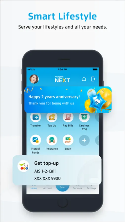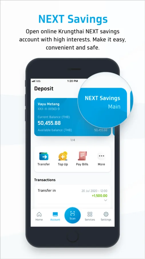 Krungthai NEXT is a mobile application that keeps you on top of your finances. Enjoy a smart lifestyle with our new app!