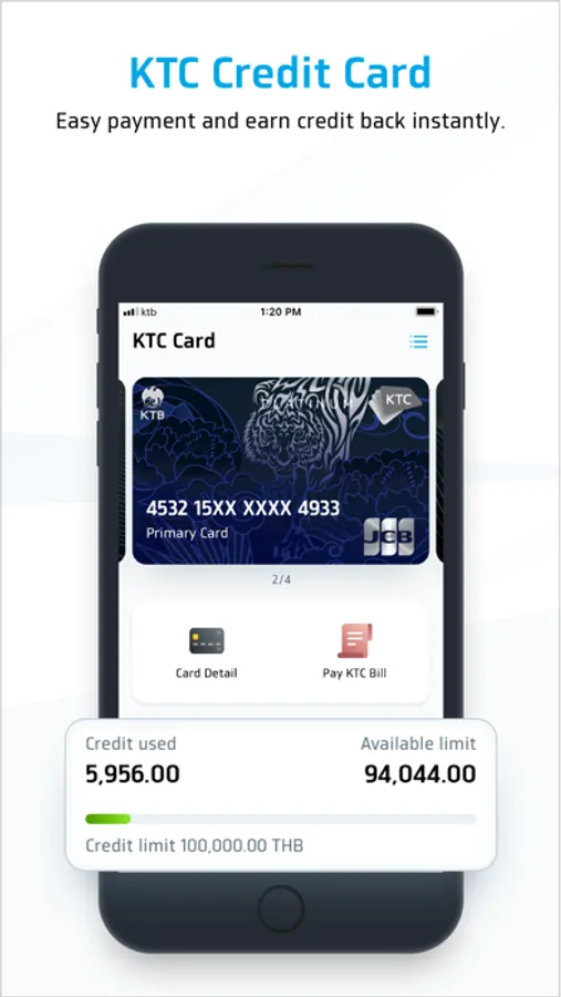 • Track your KTC card usage, available balance and reward points.