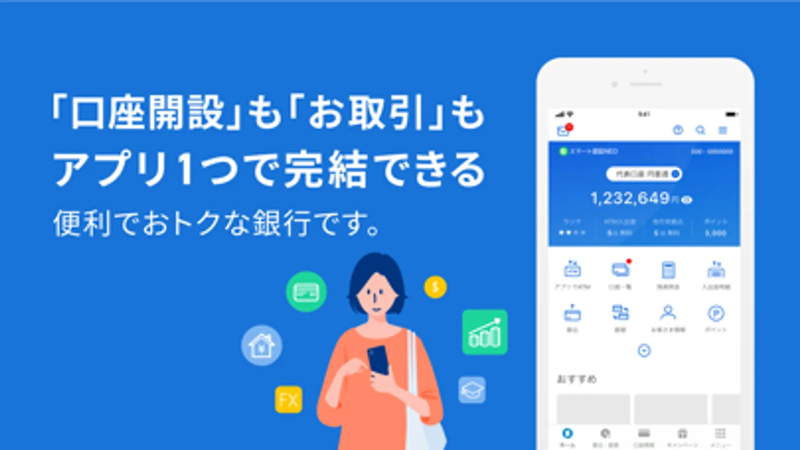 口座開設から、振込や残高照会はもちろん、外貨預金取引や各種ローン申込など、ほぼすべてのお取引がこのアプリ一つでご利用いただけます。