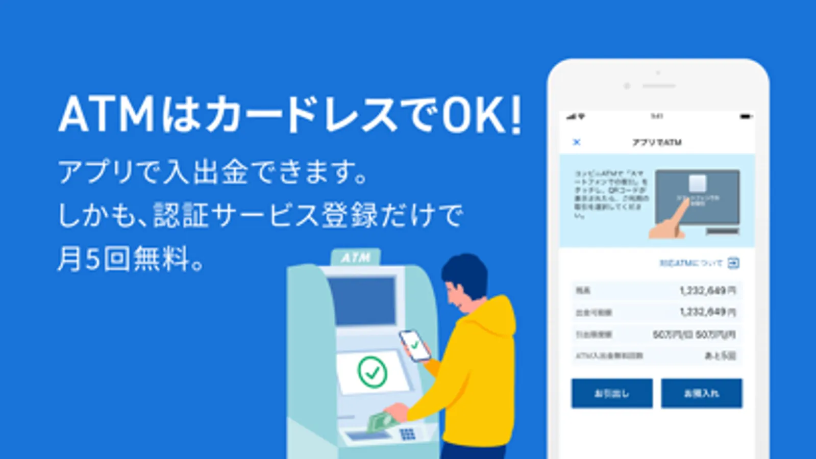 ・全国のセブン銀行ATM・ローソン銀行ATM(※一部除く)で、このアプリを使って入出金が行えます。