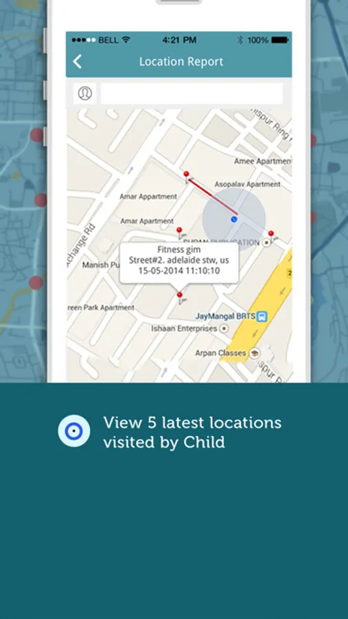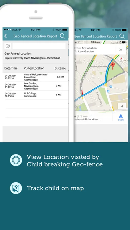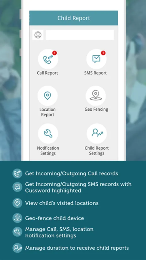 The parent application receives notifications and reports of Child’s Calls, SMSs, Locations visited, and locations visited breaking Geo-fence. Parent can manage settings to receive Calls, SMSs, location, and Geo-fence reports and notifications from their application without accessing the child app installed on child’s device.