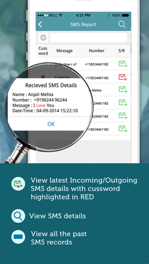 2. All Incoming and Outgoing SMSs of Child (if child is using smartphone other then iPhone)