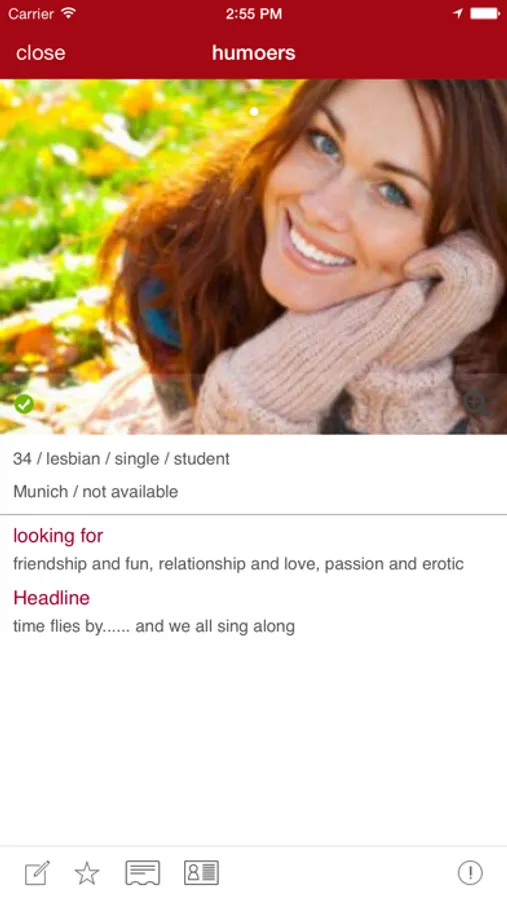 Uploaded pictures and profiles are moderated for safety. You can easily report suspicious profiles to us. We've worked hard to build a safe dating app for lesbians to ensure that are no fakes around.