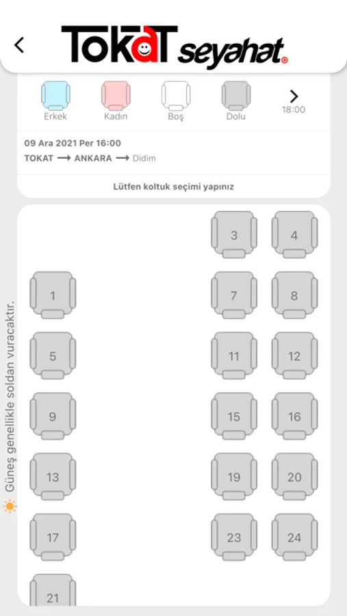 Tokat Seyahat'in şehirlerarası ulaşım biletlerinin satılmasını sağlayan bir iPhone uygulamasıdır.
