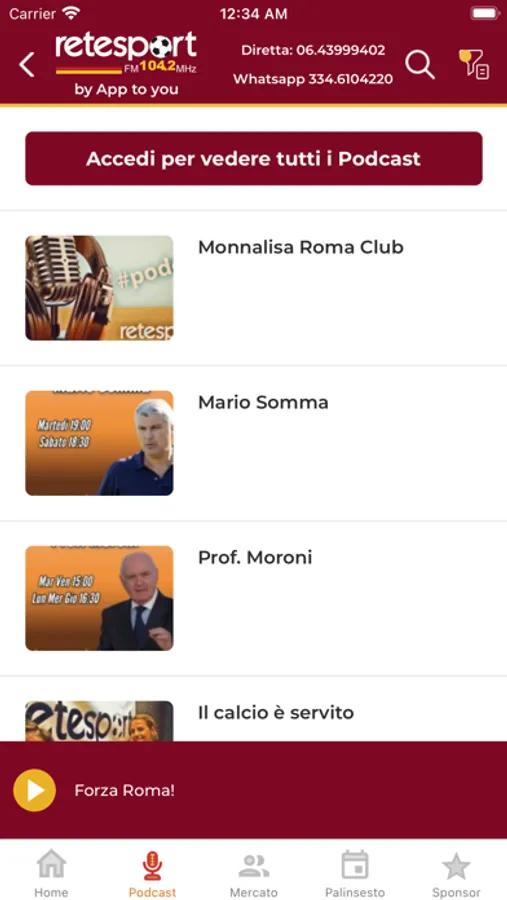 - creare un tuo profilo nella community di Retesport per accedere ai podcast storici