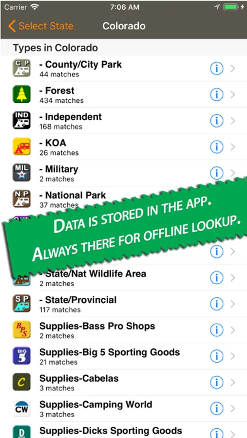 -Even primitive hike-in/boat-in/rough road spots that other apps exclude. Every point has coordinates, address or directions and phone. 98% have amenities and official website links.