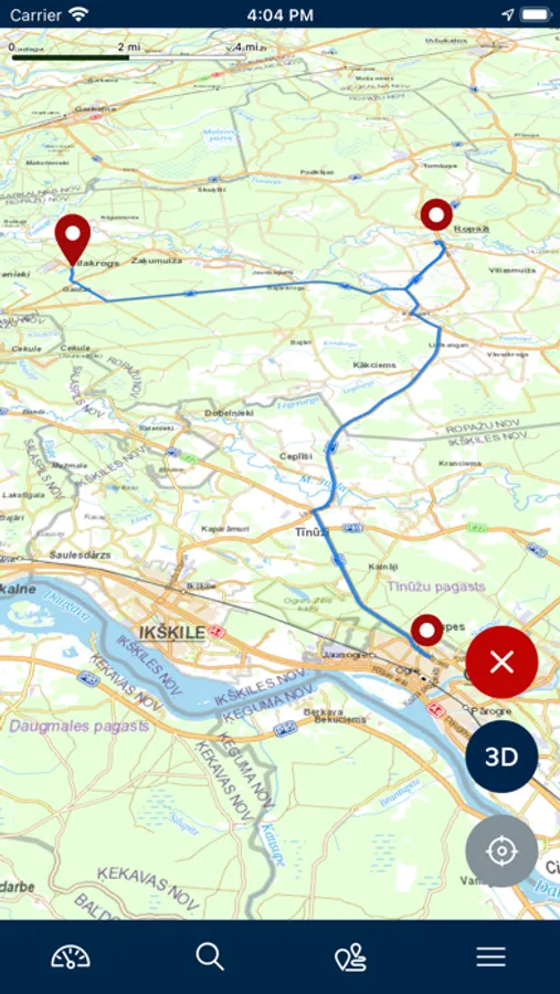 - maršruta izveide starp vairākiem punktiem uz kartes;