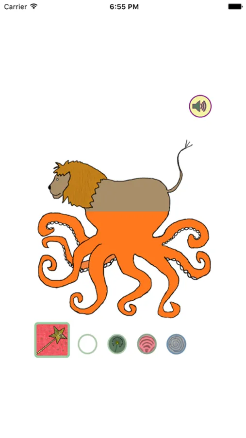 Tap the Magic wand button to let chance decide or swipe the pieces sideways yourself. If you put the right two pieces together you'll hear the corresponding animal sound.