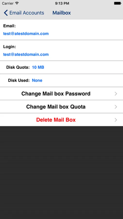 ○ Manage mail boxes (create, delete, change password and quota)