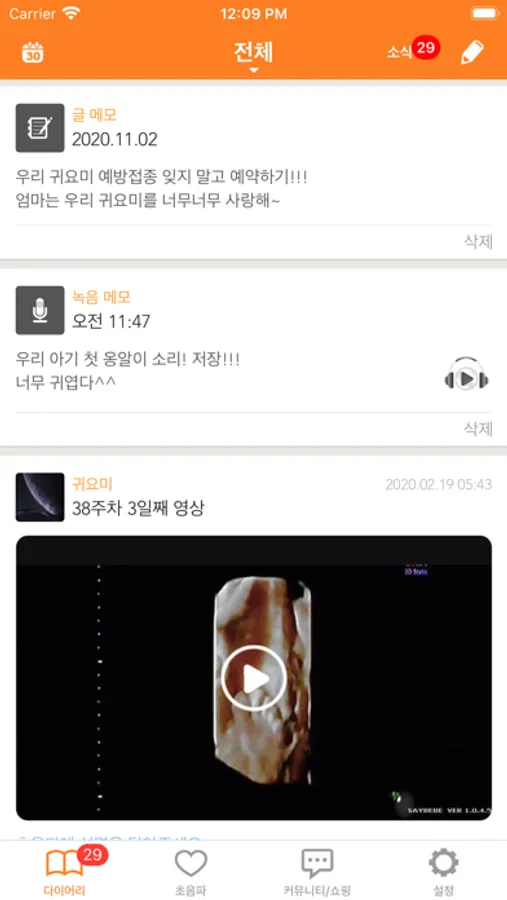 - 저장공간(사진/미디어/파일) : 초음파영상 및 사진, 또는 오디오파일을 저장. 다이어리 메모, 게시글 작성 시 사진첨부.
