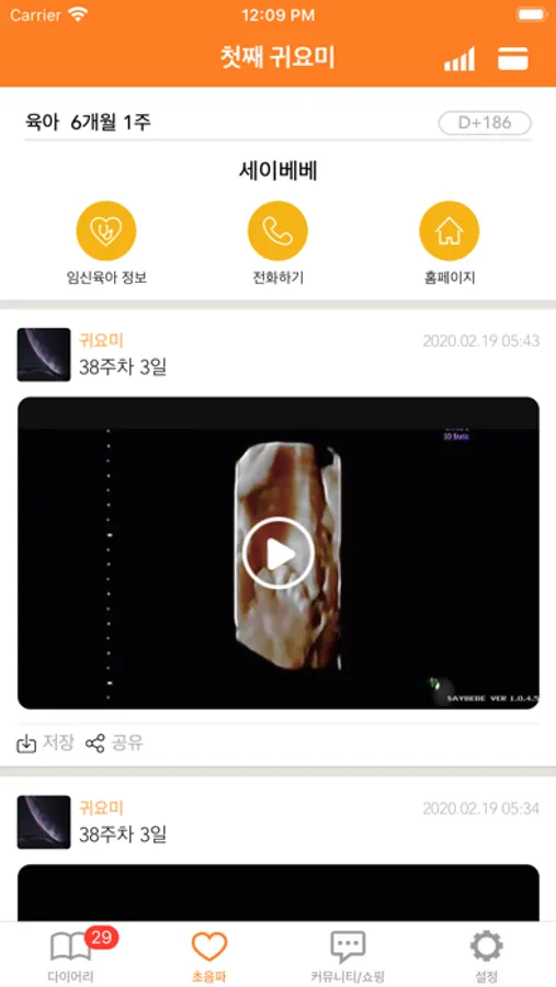 세이베베 서비스 병원에서 촬영한 초음파 사진/동영상을 언제 어디서나 실시간으로 볼 수 있습니다.