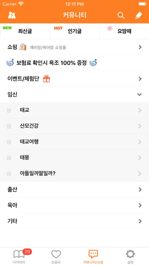 회원님들간 임신, 출산, 육아 노하우를 공유하시라고 커뮤니티 게시판 기능을 신설하였습니다.