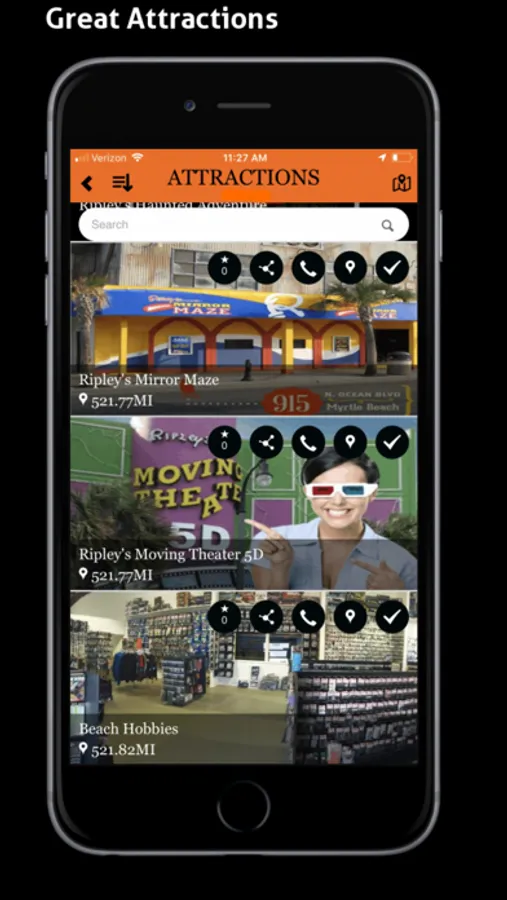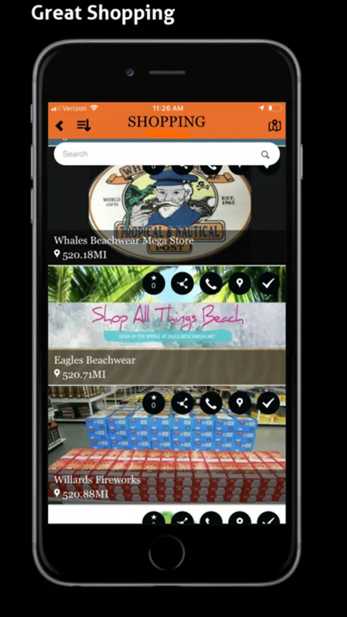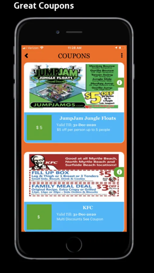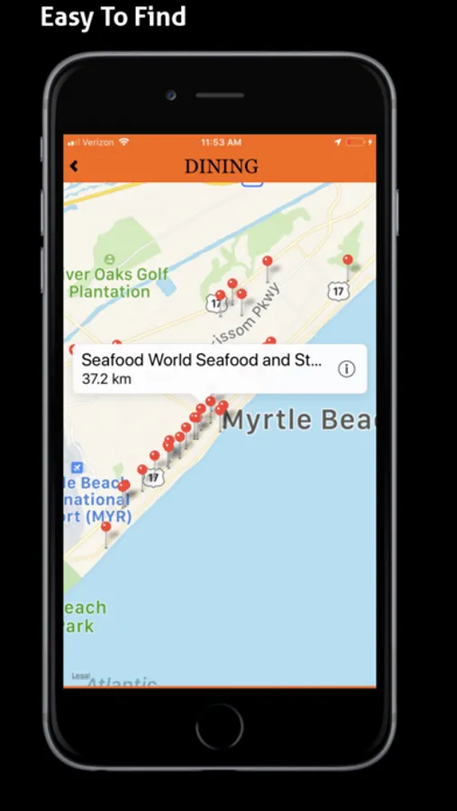 Browse for local business in any of the dining, entertainment, golf, hotel, nightlife, service or shopping categories and automatically have the stores that are closet to your current location (GPS) displayed first. Find Great Coupons for the Myrtle Beach Area. Get push notifications for up to the minute events in the area and also great deals. Get up to date weather and listen to local radio stations.