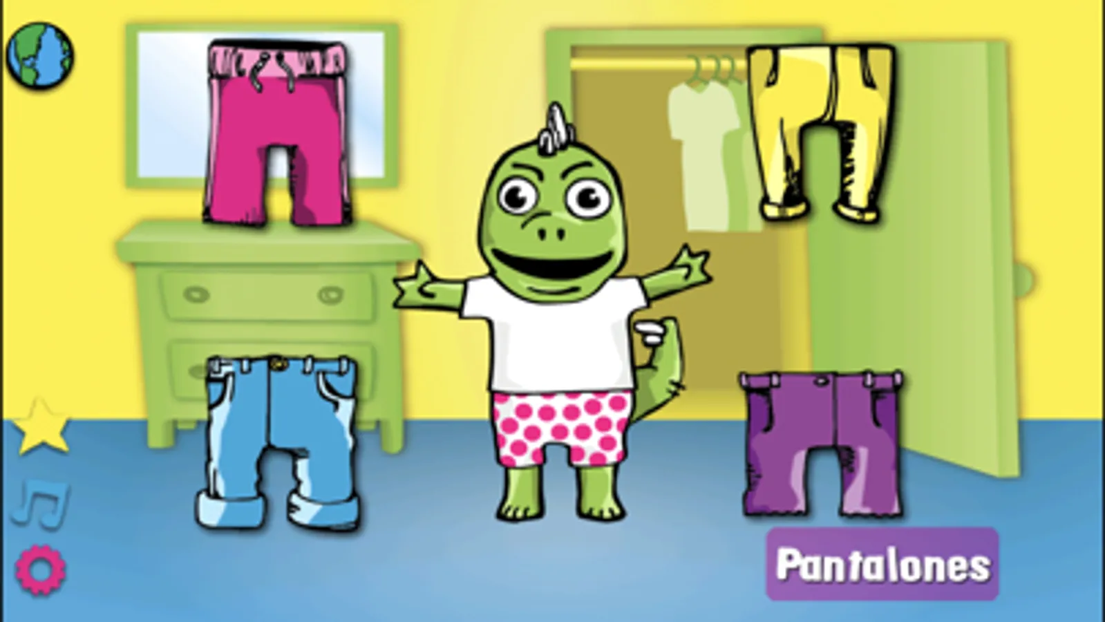 - In the Dress-up activity, your child gets to dress up Diz the Dino and get him ready for his trip to the city. The activity contains learning mode which lets the child hear the words (seven articles of clothing and four colors) and quiz mode which lets them practice what they learned.