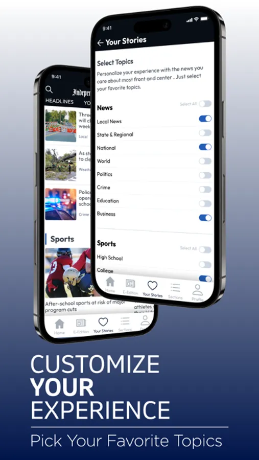 * Your Stories – personalize your experience by selecting the local news topics that matter most to you