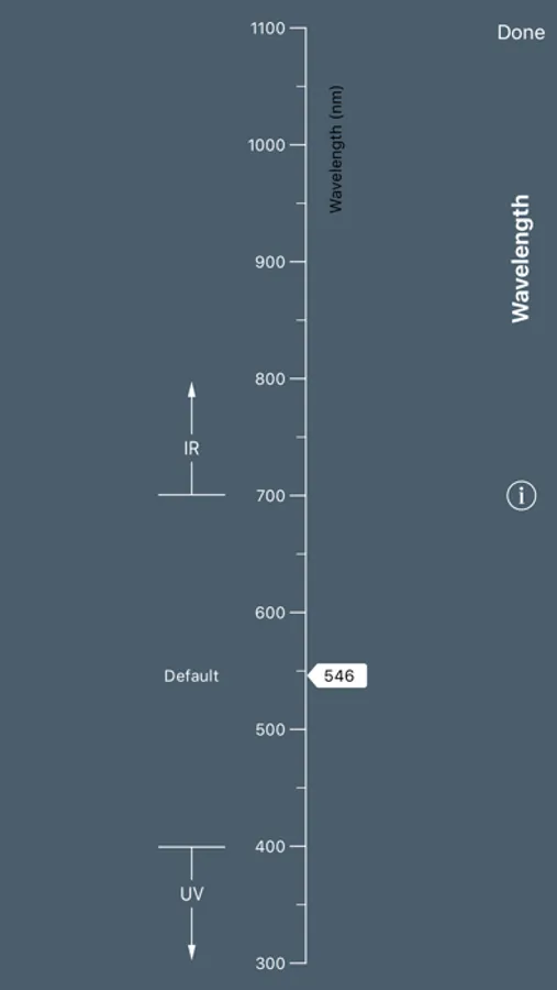 • The wavelength selection button gives a visual indication of the spectral range in which you are working (visible, IR or UV).