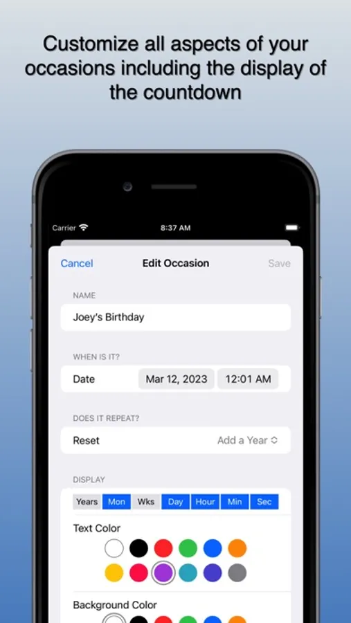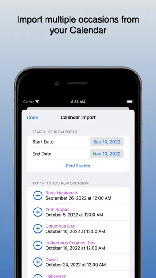 • Occasions are stored securely in your iCloud account, so no one except you has access to them