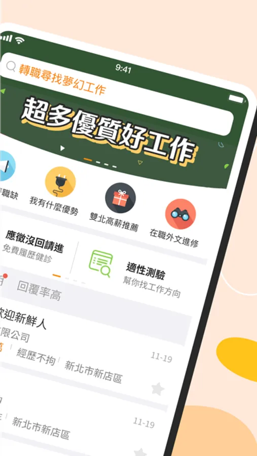 ●智慧推薦工作 -依你儲存、應徵工作的喜好,AI精準推薦,好機會不錯過!