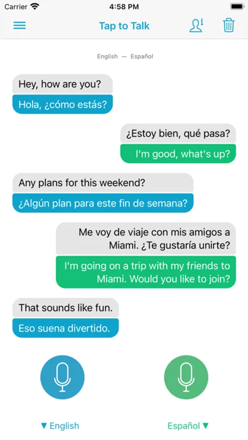 Instantly speak another language, for free, with SayHi Translate on iOS! Have a conversation in two languages and hear your voice translated instantly.