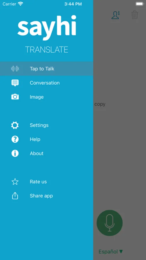 Tap and hold on a translation to copy or share your conversations easily via email, SMS, Facebook, or Twitter.