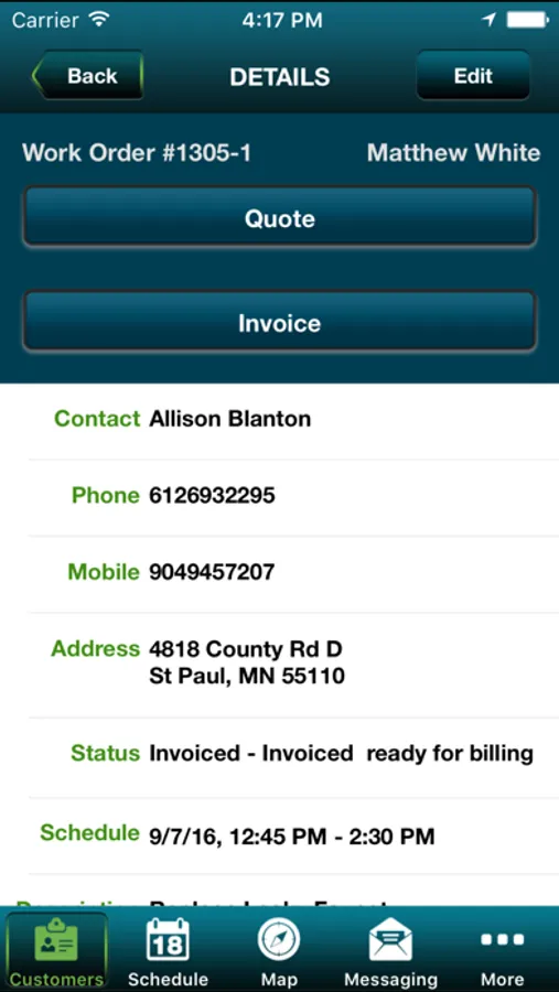 • Mobile Invoicing — Start your pay cycle sooner by generating and sending professional-looking, branded invoices before you leave the customer’s location.